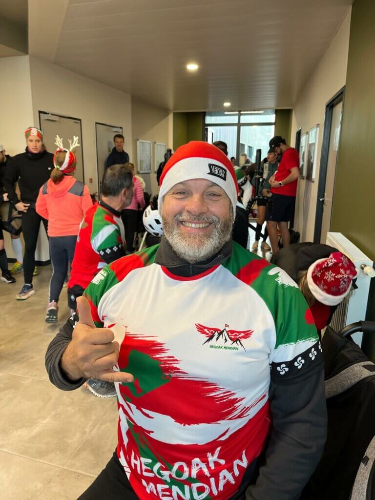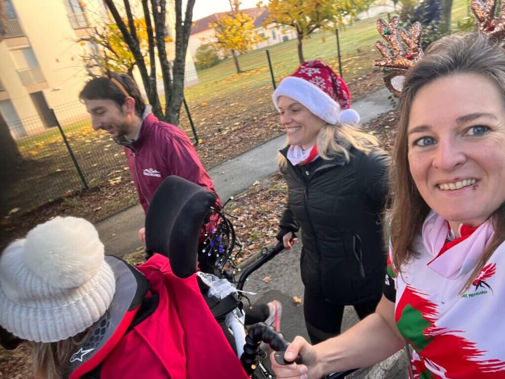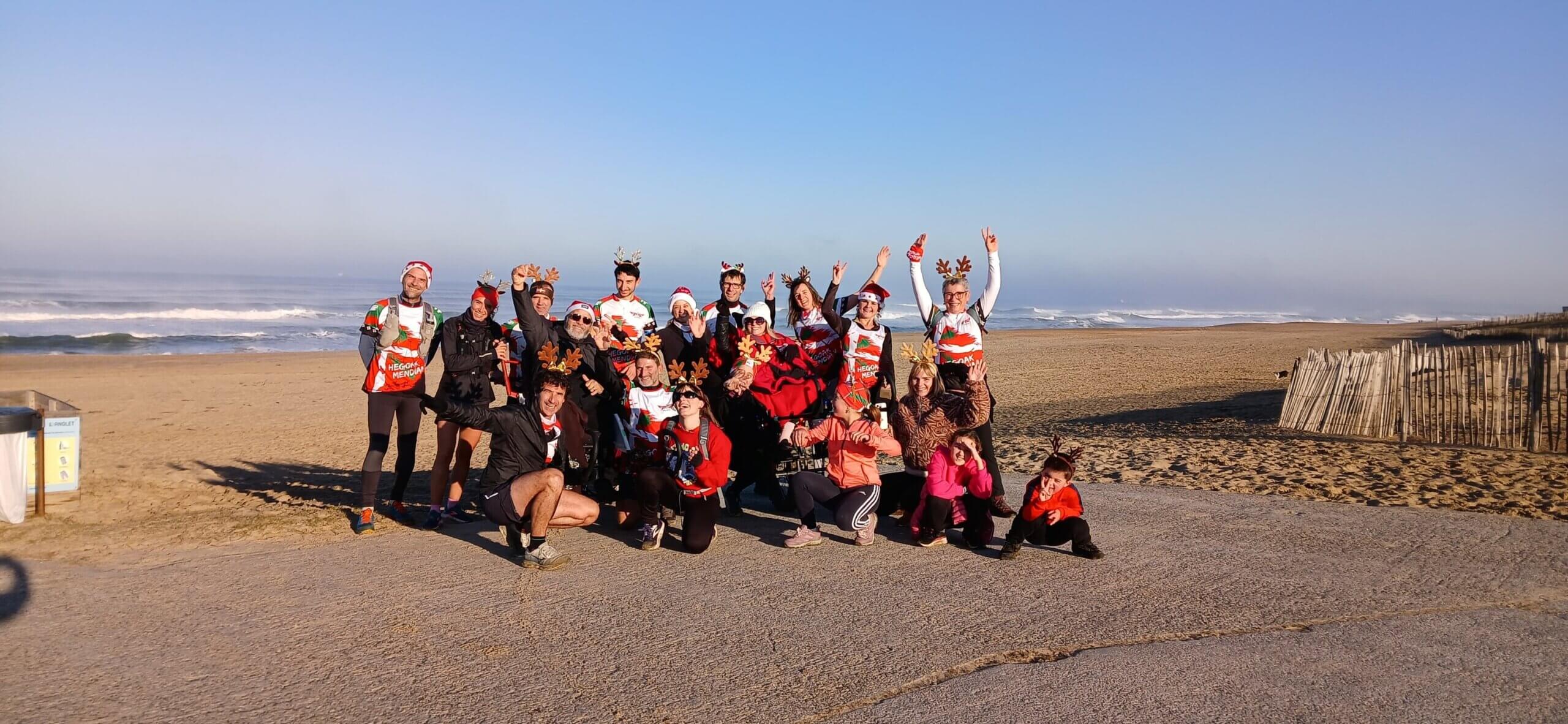 2 joelettes Hegoak Mendian emmenées par NATH et JANO ont participé à la marche 6,5 km de LA FOULÉE DU PÈRE NOËL ce matin à Angelu Anglet, joli événement organisé par le Anglet Olympique Athlétisme .