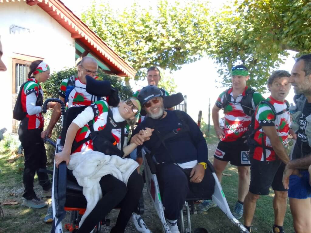 3 joelettes pilotées par Nathalie, Maë et Jeannot, ont ainsi pu parcourir ces sentiers tronçons des chemins de Compostelle, sentiers passant par les jolies chapelles de Soyarza et Haranbeltz, et profiter aussi d'un super panorama sur les Pyrénées : Anie, le pic du midi d'Ossau, le pic de Bigorre et autres.