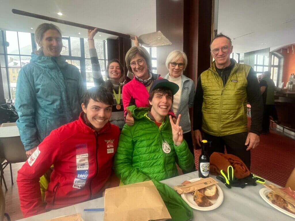 Les bénévoles et organisateurs du Trail Blanc nous accueillent encore à bras ouverts et, malgré notre arrivée tardive et le fait que la remise des prix officielle ait, bien sûr, déjà eu lieu, la garbure réconfortante nous réchauffe et Bastien est gâté par des prix fabuleux !!!!