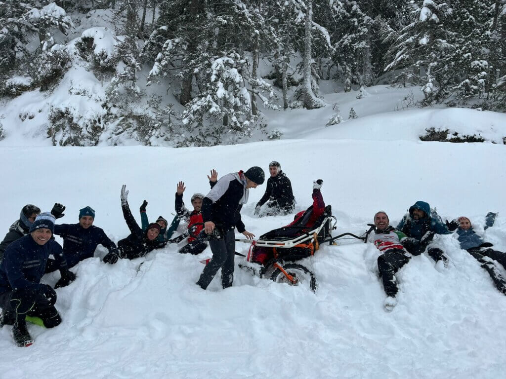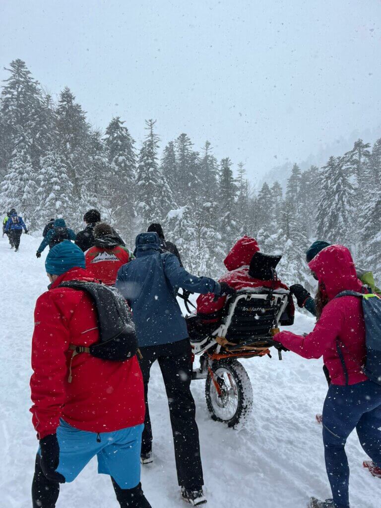 Une équipe tellement solidaire, bienveillante, positive et ingénieuse face à tous les imprévus qui nous attendaient !!! Notre Bastien comme pilote intrépide (qui n'en était plus à sa première aventure après son épopée au Népal) et courageux, a affronté la nuit, la neige, et l'inconnu du haut de sa joëlette !